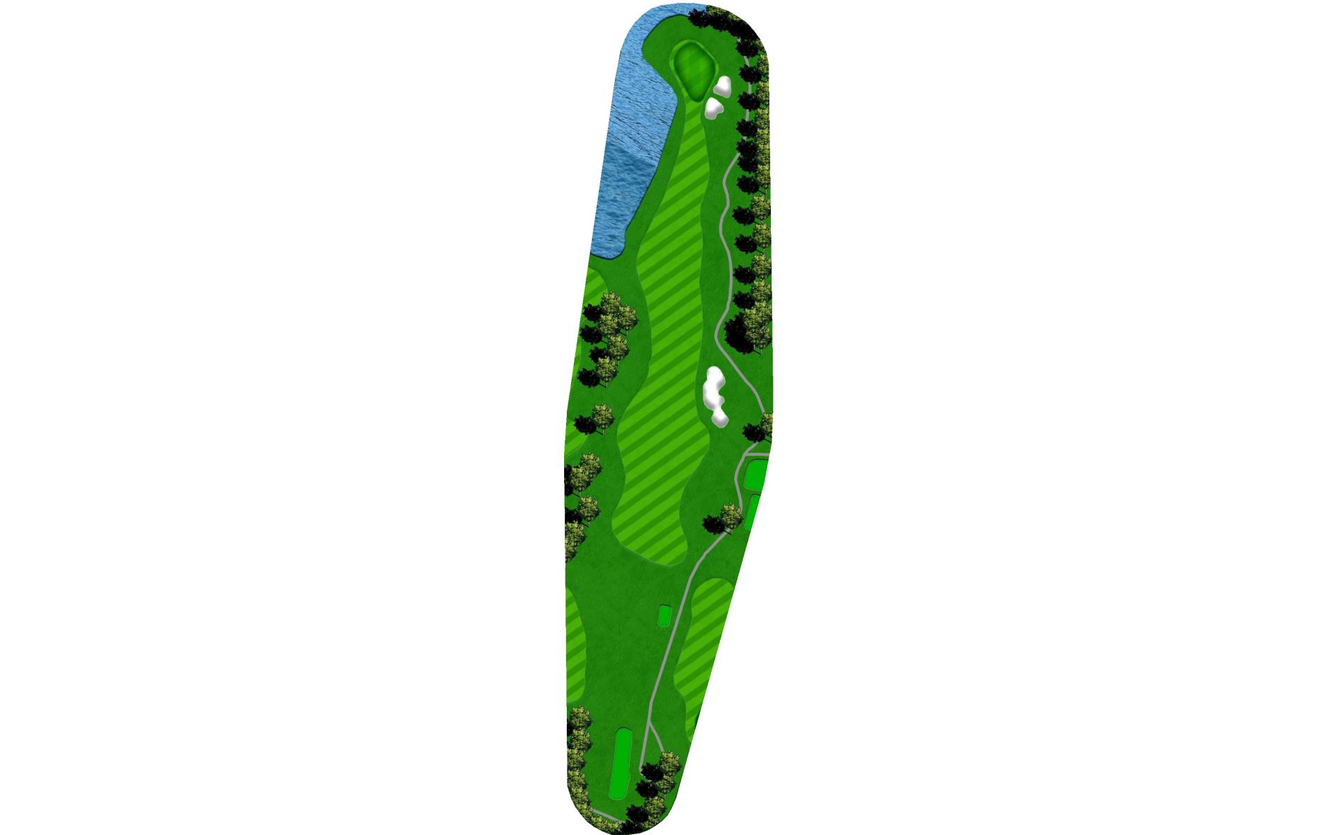 "Bagpipes" is a long par 4 that sets up for a challenging finish. A good drive leaves a long approach into yet another peninsula green. Extreme undulation in the middle parts of the green make placement on the second shot paramount to success with the putter.